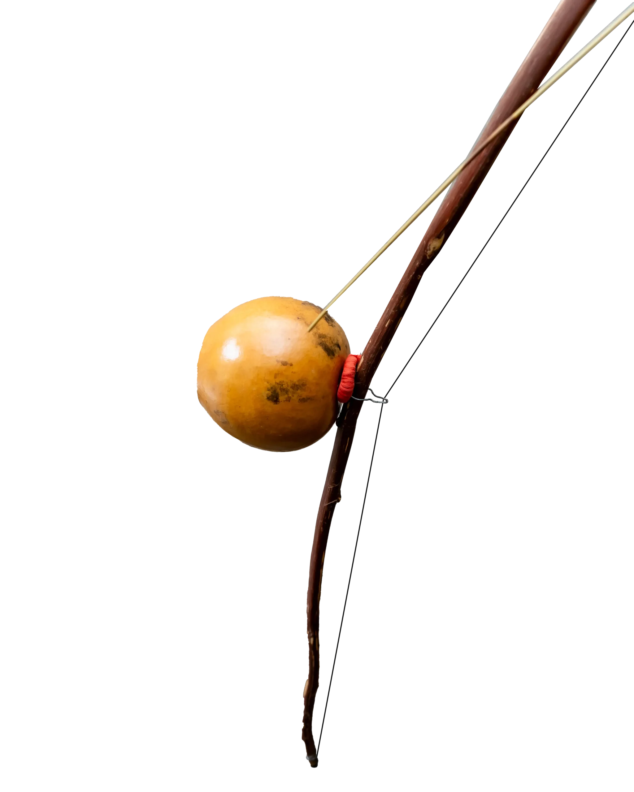 A single-string bow from Zulu tradition; the musician changes pitch by altering string tension with the mouth.